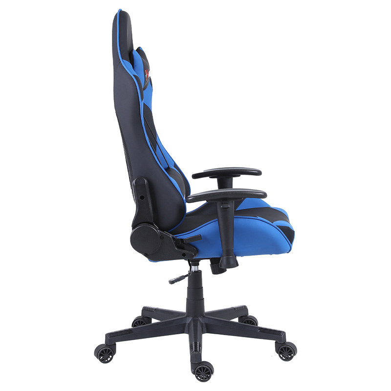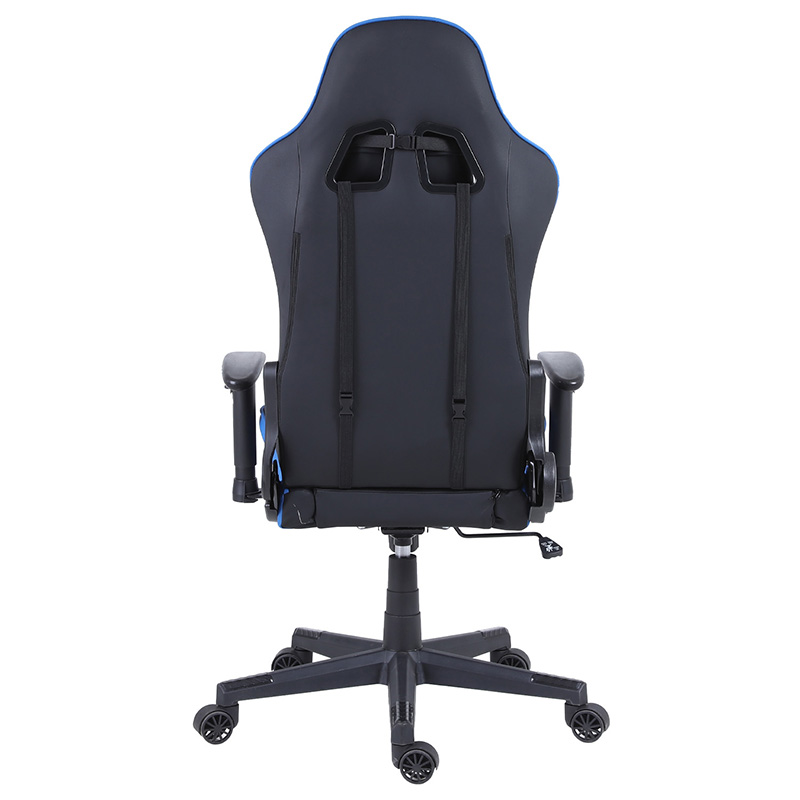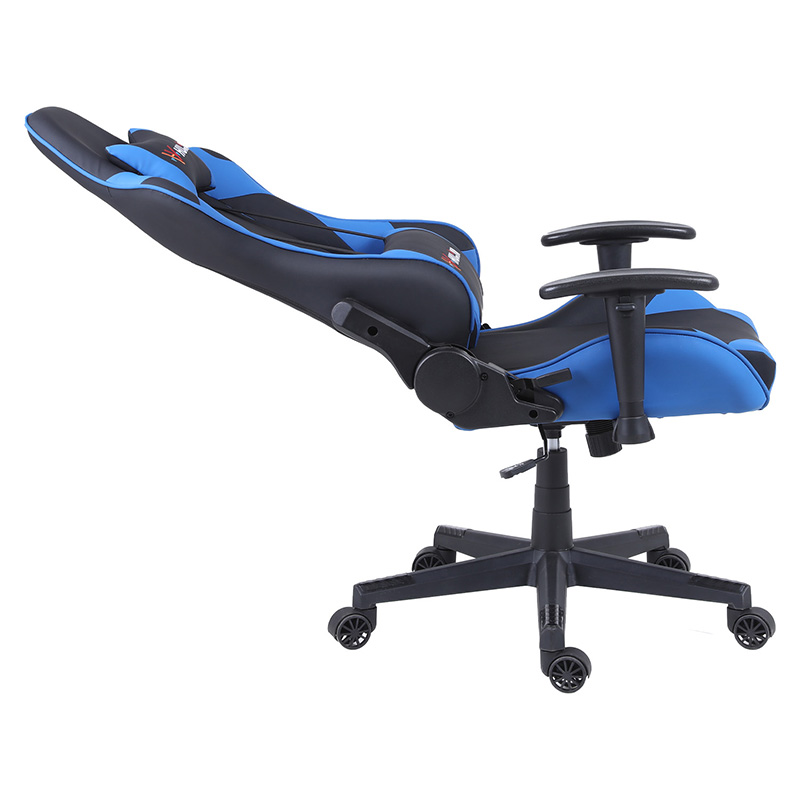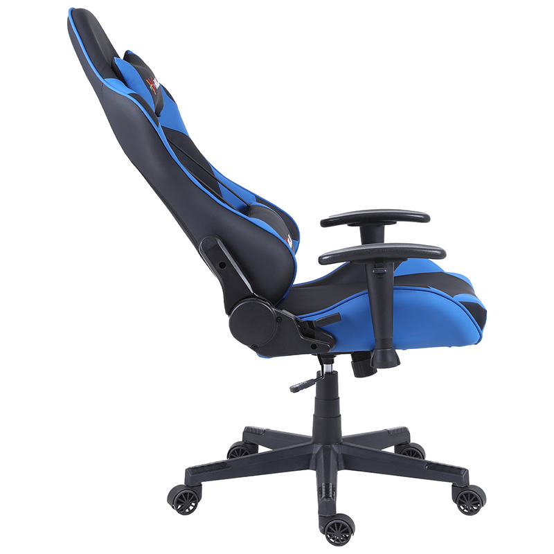 此款电竞椅采用1.2壁厚的全钢框架,内填充高弹定型绵,外包裹高耐磨PU皮,支持多角度工学后仰调节功能,颈部和腰部两处支撑贴合脊柱,适用于办公、家用、专业赛事等多个场景。
