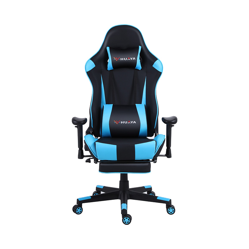 此款电竞椅采用1.2壁厚的全钢框架,内填充高弹定型绵,外包裹高耐磨PU皮,支持多角度工学后仰调节功能,颈部和腰部两处支撑贴合脊柱,配合可伸缩搁脚凳,是一款舒适的办公午休椅。